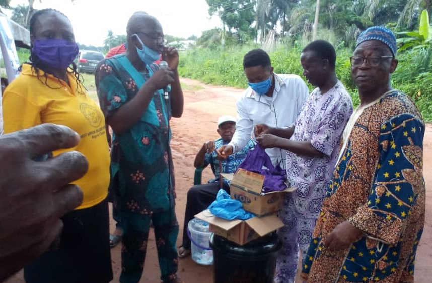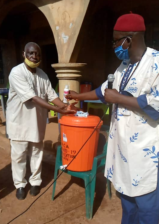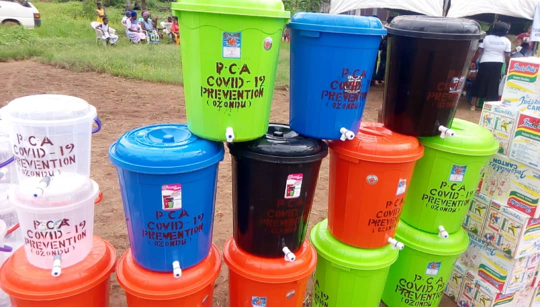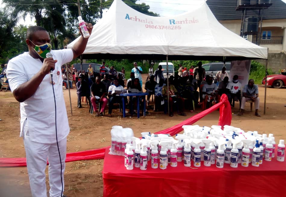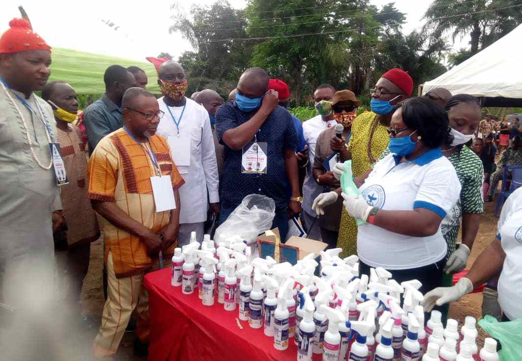 Ozondu which means life saver in the local Igbo dialect was subsequently distributed alongside other palliatives, that are also essential in the fight against COVID-19, such as food, sanitizers, soaps, and containers fitted with taps for hygienic handwashing. Health education on COVID-19 prevention and proper use and care of the face mask, handwashing and sanitizer application techniques were presented by a team of healthcare professionals. They include Dr Patricia Iheanacho, a physician resident in Imo State, the PCA Health Committee Chairman and President of the West African College of Nursing (WACN) Imo State Chapter Mrs Catherine Otuibe, and the Assistant Chief Nursing Officer at Nigerian Center for Disease Control (NCDC) Mrs Comfort Iwu. Mrs Iwu was representing the lead health educator for the day, Dr. Chinemerem Dan Onwuliri an Amuzi son, who leads the NCDC COVID-19 Rapid Response Team in Imo State. Mr Chris Anyanwu, the Amuzi-born manufacturer of the PCA branded sanitizer, that was purchased for distribution at the event, gave a presentation on the quality of his sanitizer brand, and guideline on use of sanitizers.