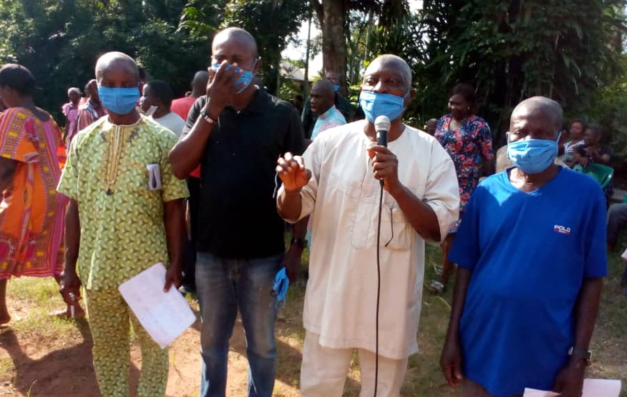 Chief Joe Kemdirim who doubled as a reporter and co-master of ceremony for the program, with the Master of ceremony and Chairman of the PCA Central Working Committee (CWC) Chief BC Nwachukwu, facilitated proceedings at the event. They announced that following the “Ozondu for All”, launch here today at Ako-na-Ojibo, a COVID-19 sensitization visit to all the ten villages of Amuzi, to distribute Ozondu and other palliatives, will commence, immediately. The ten villages of Amuzi are, Ako-na-Ojibo, Izuoha, Umuhu-na-Loghocho, Umunnawe Umuochamoko, Umuodu, Umuofor, Umuokazi, Umuokoro and Uwuowasi.